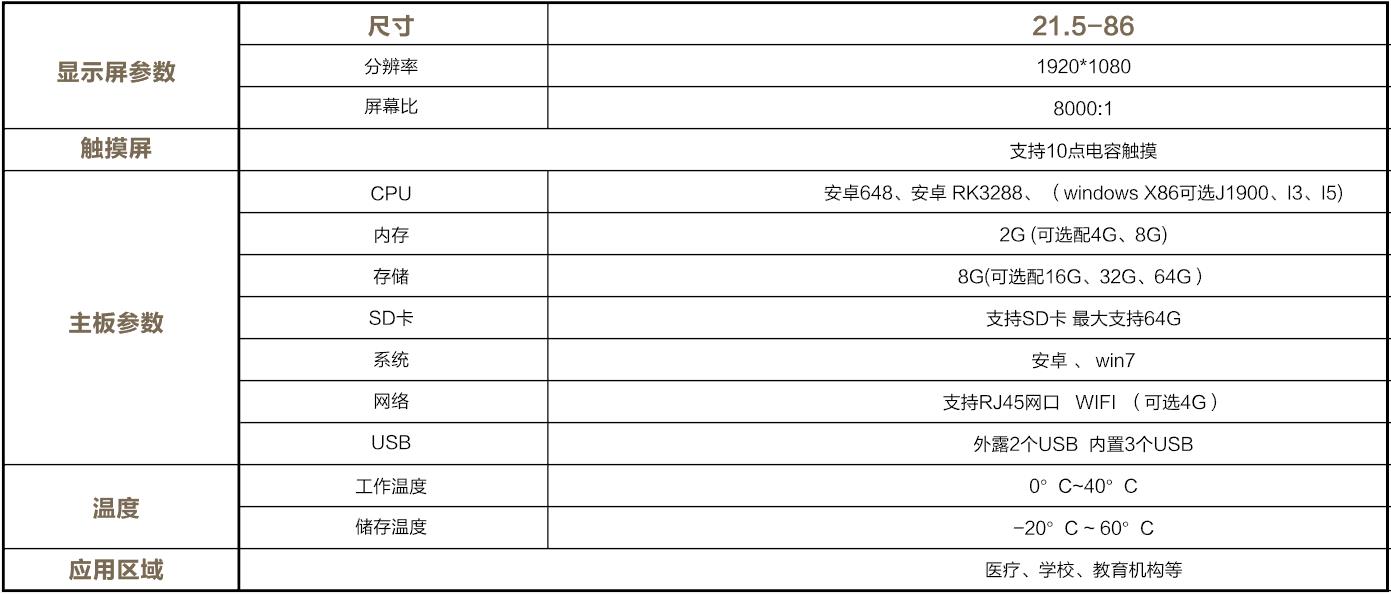 質(zhì)感拉絲金屬;高清畫質(zhì);采用紅外觸摸技術(shù),觸摸極速反應(yīng);內(nèi)置WIFI;支持U盤導(dǎo)入內(nèi)容。